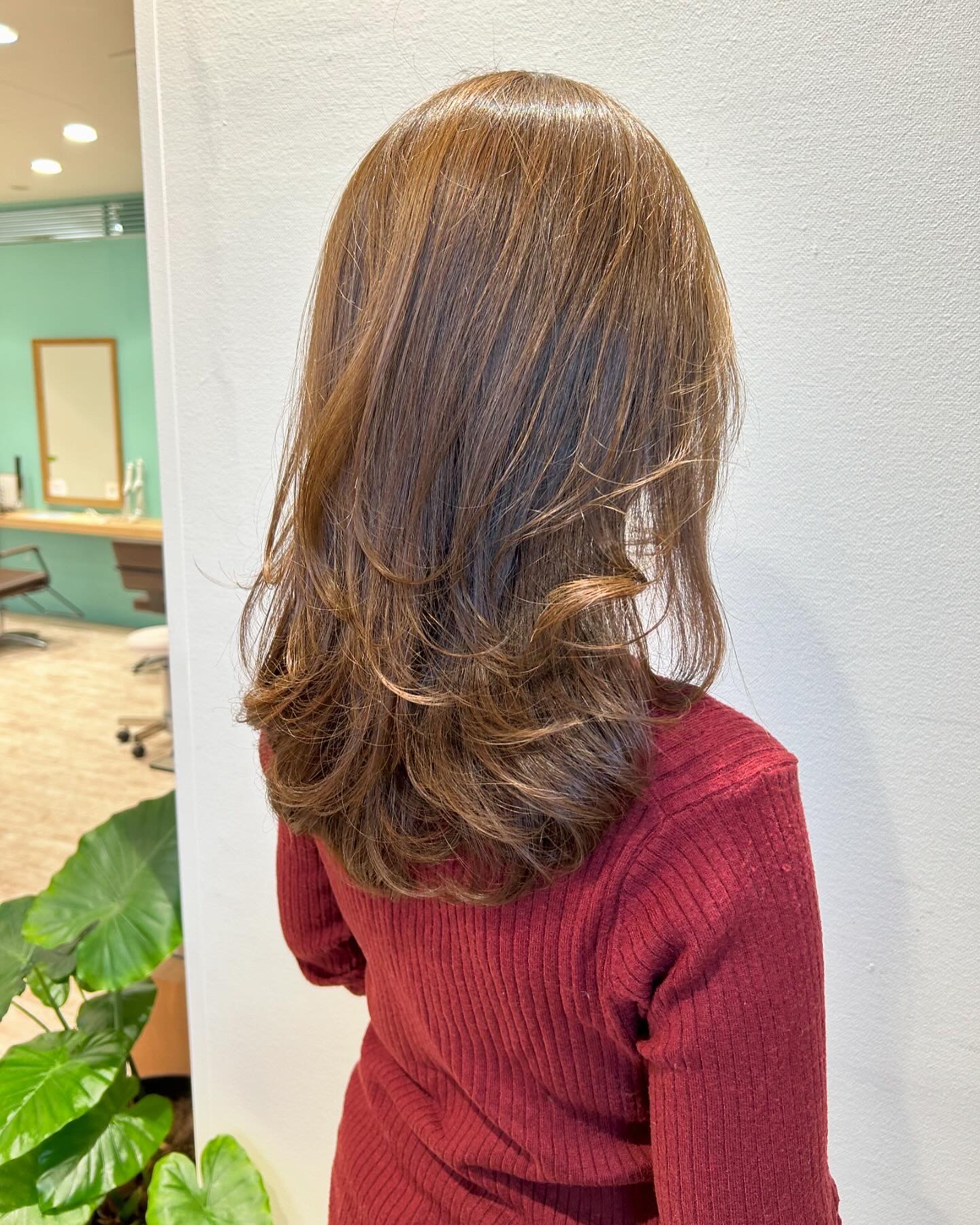 ここしばらく染め続けて、褪色後も赤みが出にくくなり、透明感のあるベージュ系に安定してきたお客様ヘアです